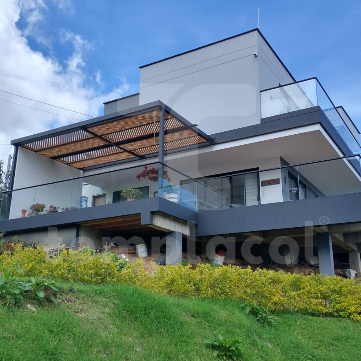 Casa San Antonio de Prado Tipo de producto: Vidrio templado Detalles del proyecto Cliente: Alufachadas Lugar: San Antonio de Prado - AntioquiaMaterial: Vidrio Templado (FT) 6mm y 10mm Incoloro