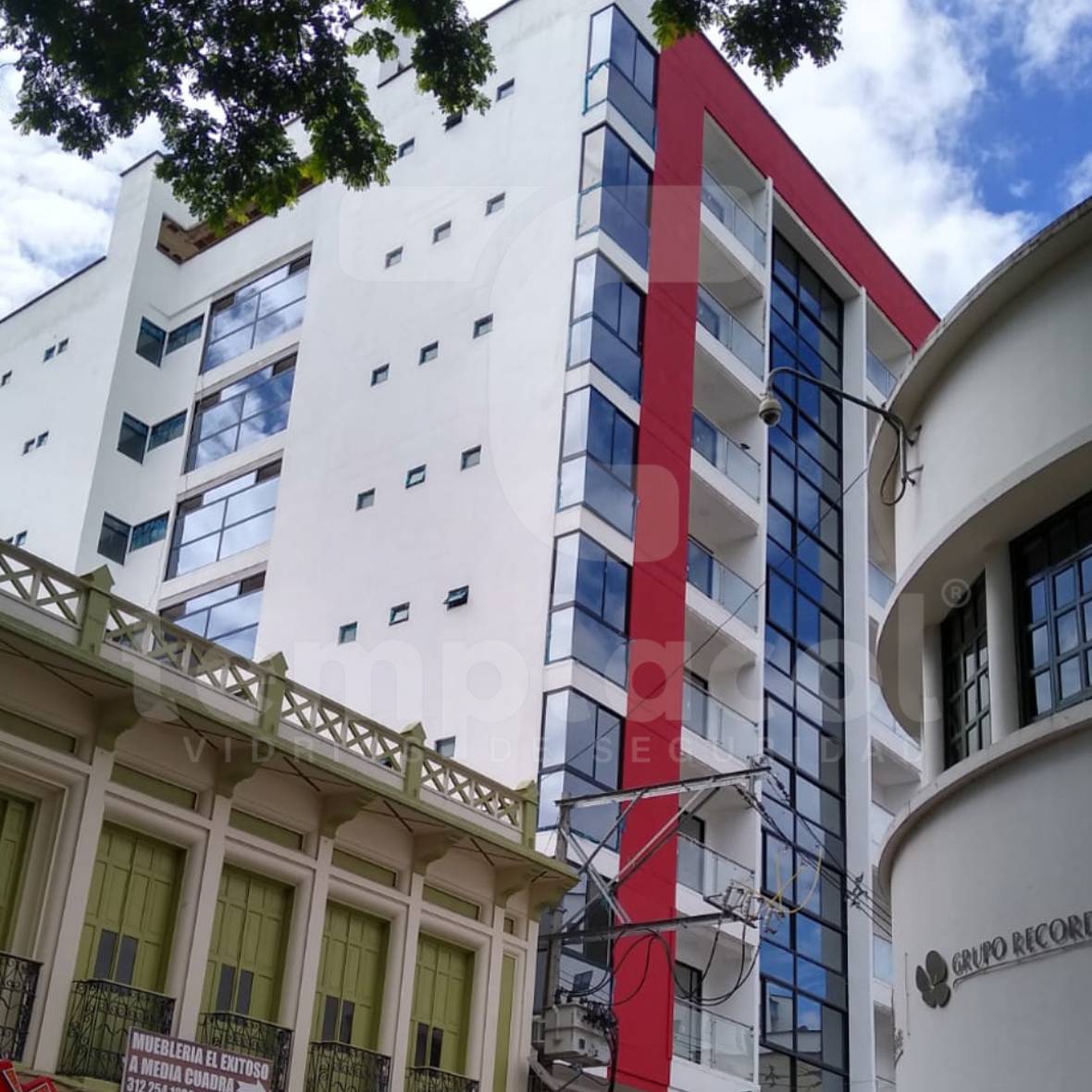 Edificio de Andes Tipo de producto: Vidrio Laminado Detalles del proyecto Cliente: Alufachadas Lugar: Andes - AntioquiaMaterial: Vidrio Laminado Recocido (Crudo) 4mm Cool Lite ST136 + PVB Incoloro + 4mm Incoloro