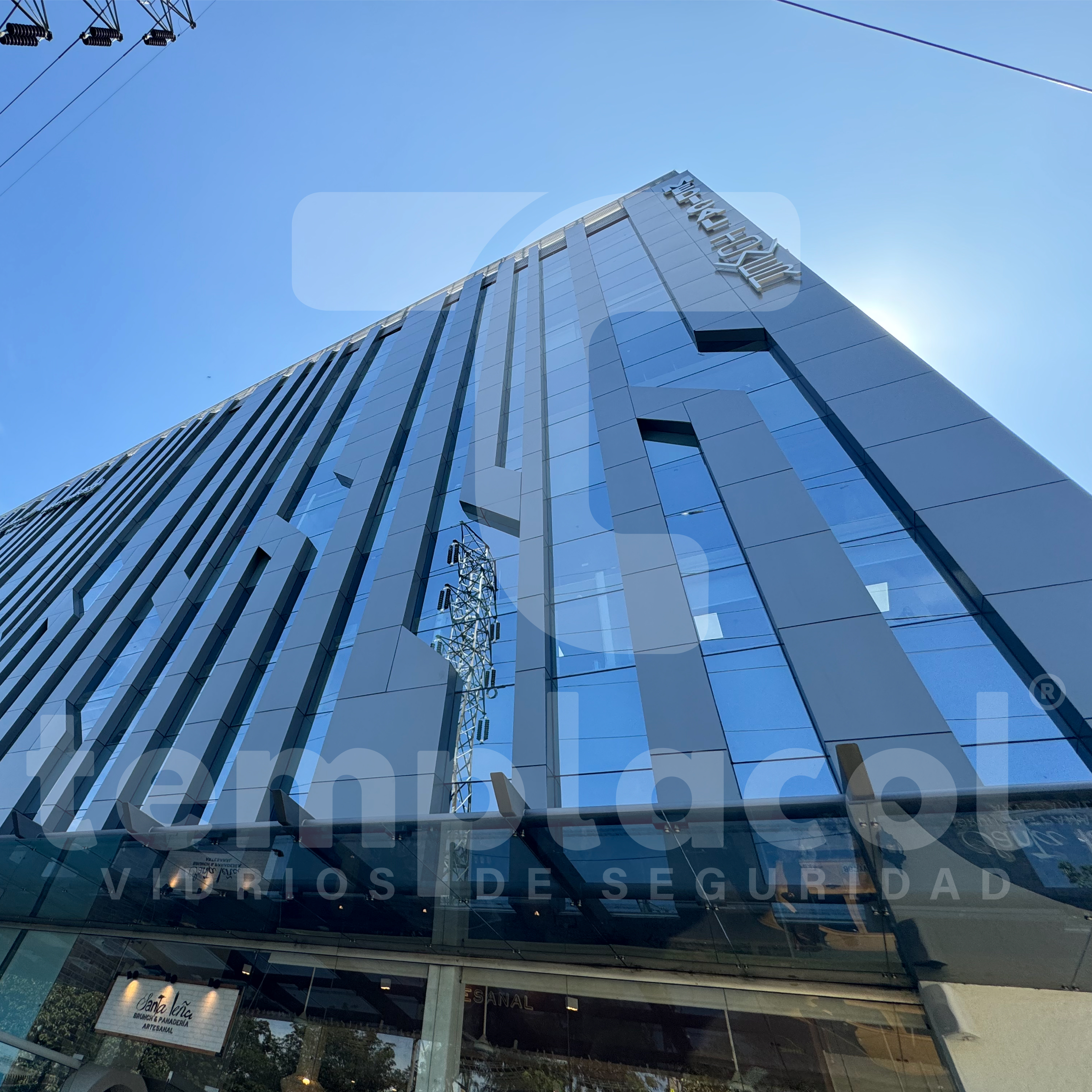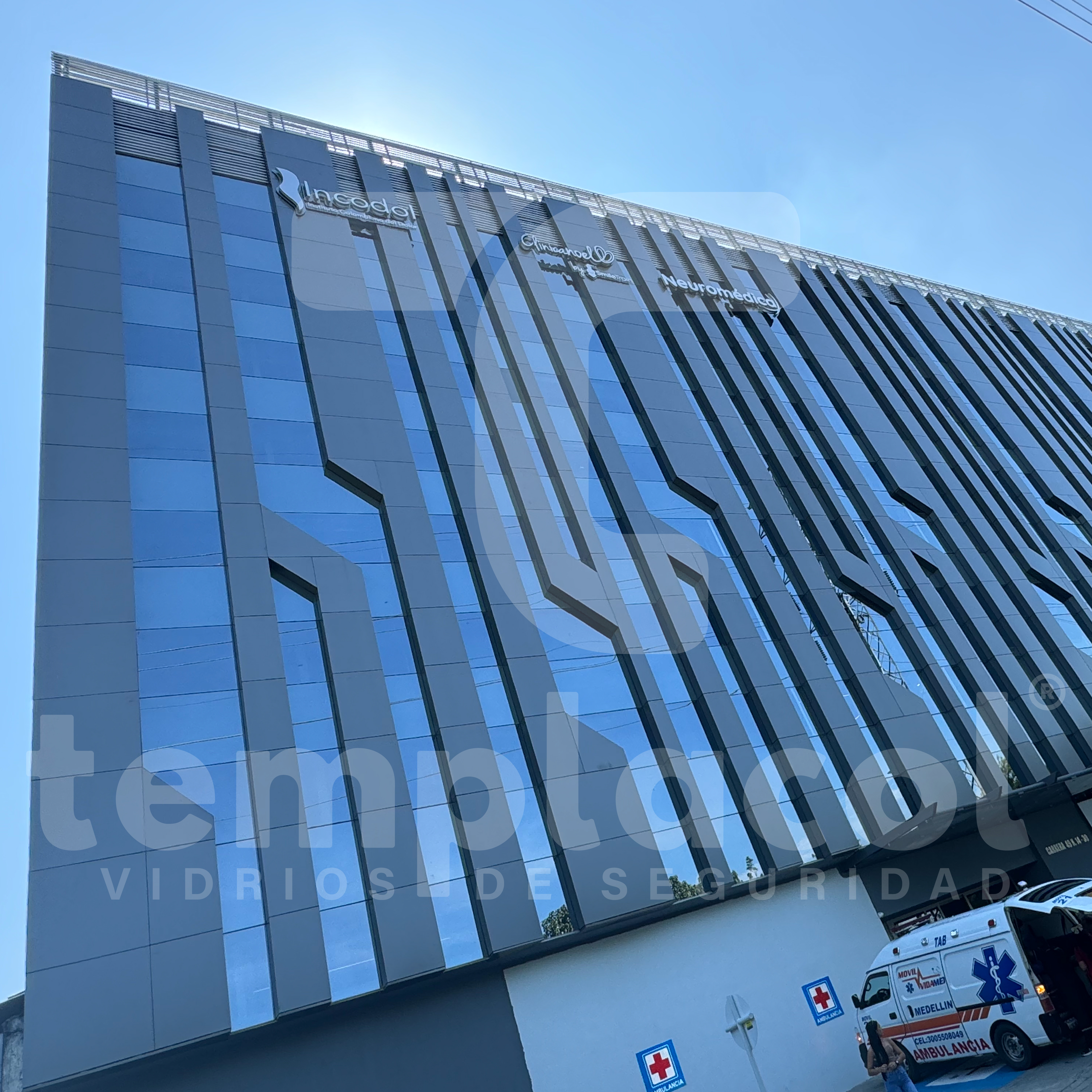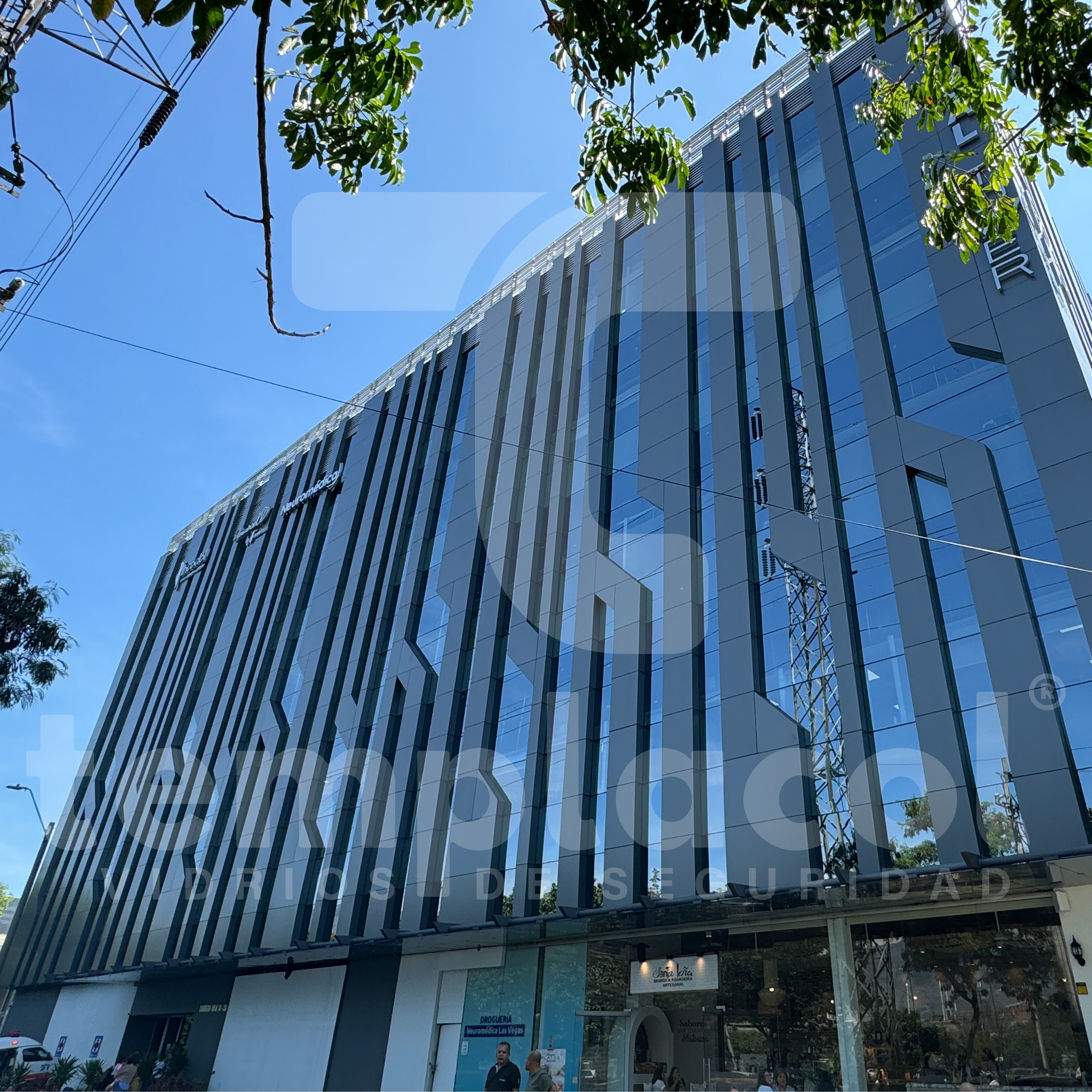 Medical Tower Poblado Tipo de producto: Vidrio Laminado Vidrio templado Detalles del proyecto Desarrollado por:Seis +1 Arquitectura LivianaEspecificaciónVidrio Laminado Templado (FT)6mm Cool Lite ST136 + PVB incoloro + 5mmIncoloro