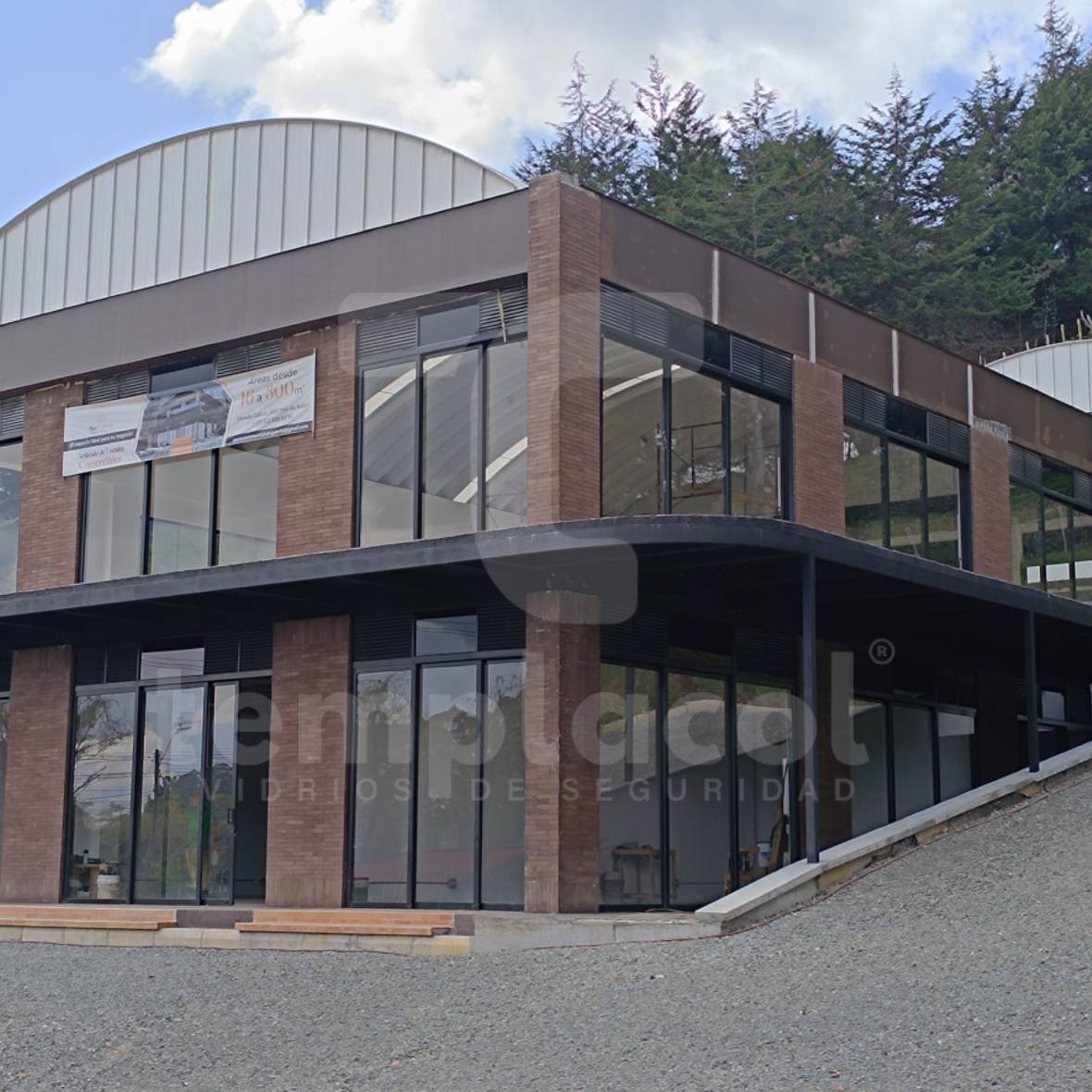 Parque Comercial San Gabriel Tipo de producto: Vidrio templado Detalles del proyecto Cliente: Glass Vidrio, Aluminio Y AceroLugar: Rionegro- AntioquiaMaterial: Vidrio Templado (FT) 6mm y 8mm Incoloro