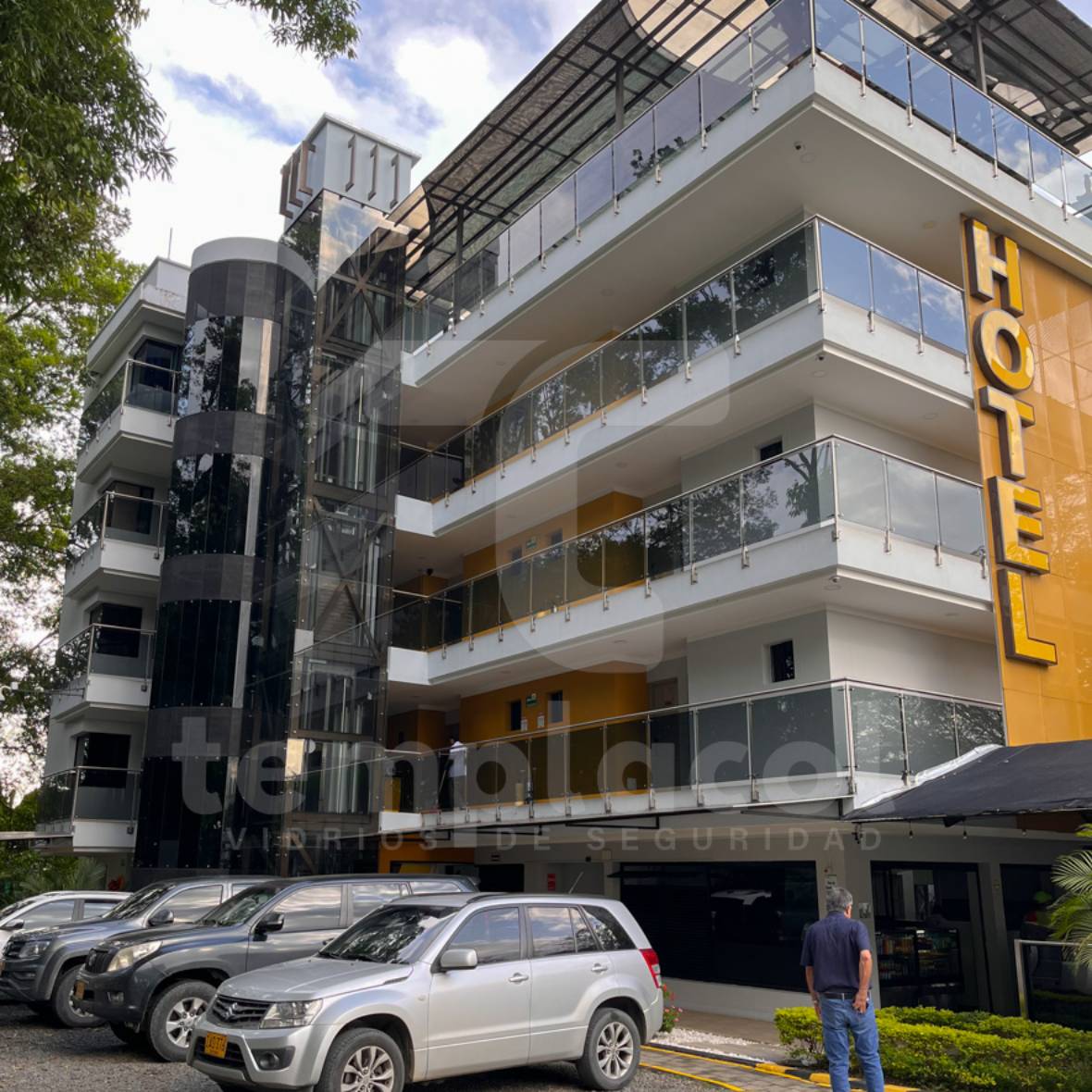 Hotel Milla de Oro Tipo de producto: Vidrio templado Detalles del proyecto Cliente: Vidrios y Diseños LGLugar: Apartadó - AntioquiaMaterial: Vidrio Templado con Serigrafía (FT) 10mm Incoloro + Serigrafía Micropuntos Negros